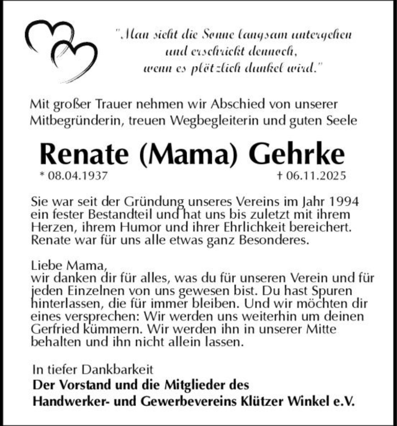 Der Handwerker- und Gewerbeverein Klützer Winkel e.V. wurde 1994 gegründet und versteht sich als Interessenvertretung seiner Mitglieder, zu denen Selbständige aus Handel, Handwerk, Gastronomie, Dienstleistungen und der Freien Berufe gehören.